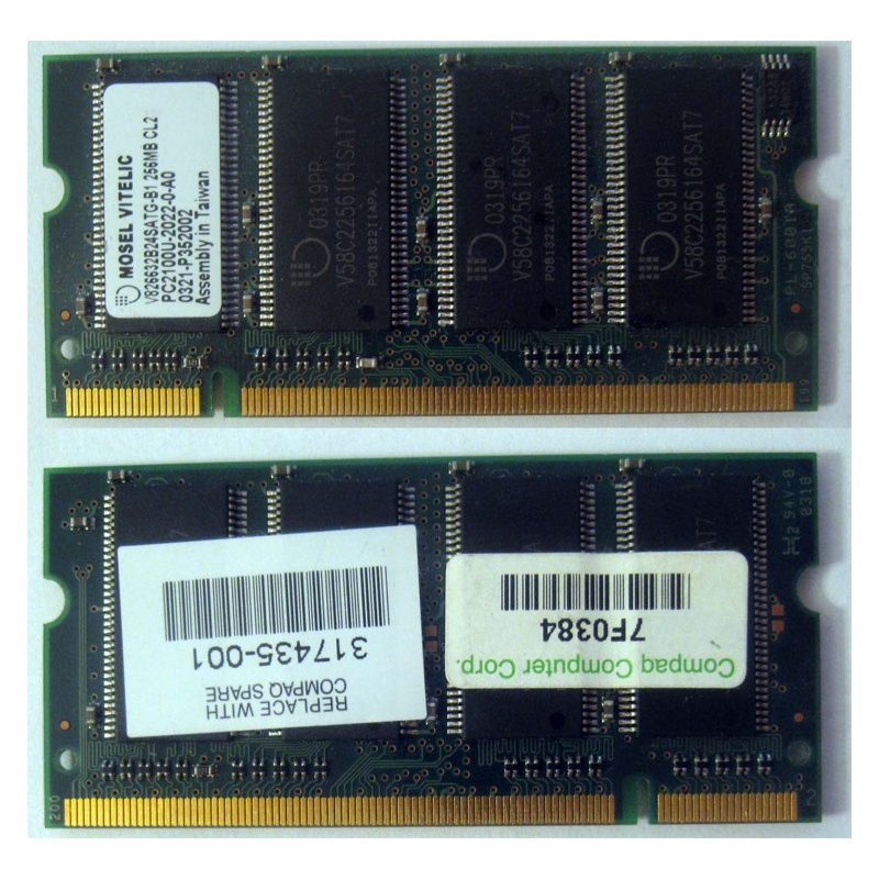 Модуль памяти Б/У 256MB DDR Memory SODIMM, DDR266 (PC2100), CL2, 200-pin, p/n: 317435-001 (для ноутбуков Compaq Evo/Presario Notebook).