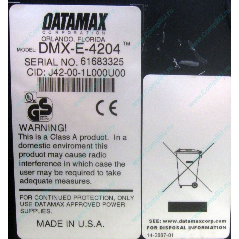 БУ термотрансфертный принтер Datamax DMX-E-4204 (USB/COM/LPT) для термопечати самоклеющихся этикеток.