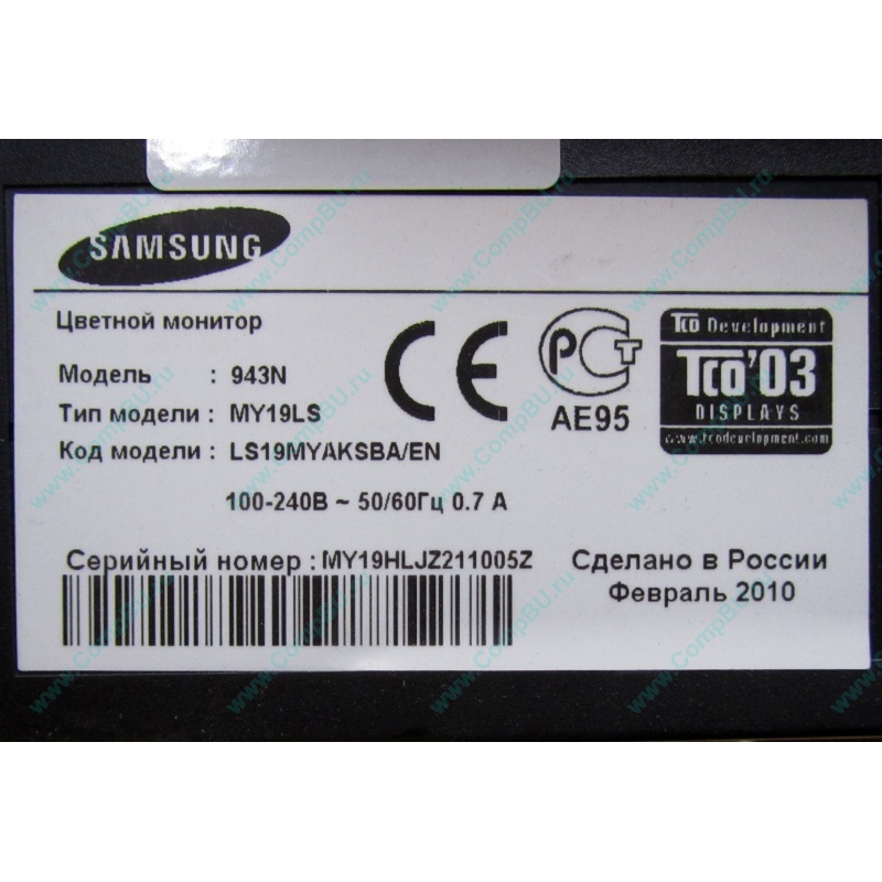 Монитор Б/У 19" TFT Samsung SyncMaster 943N "квадратный" (1280x1024, 5:4). В нижней части экрана есть две малозаметные царапины.