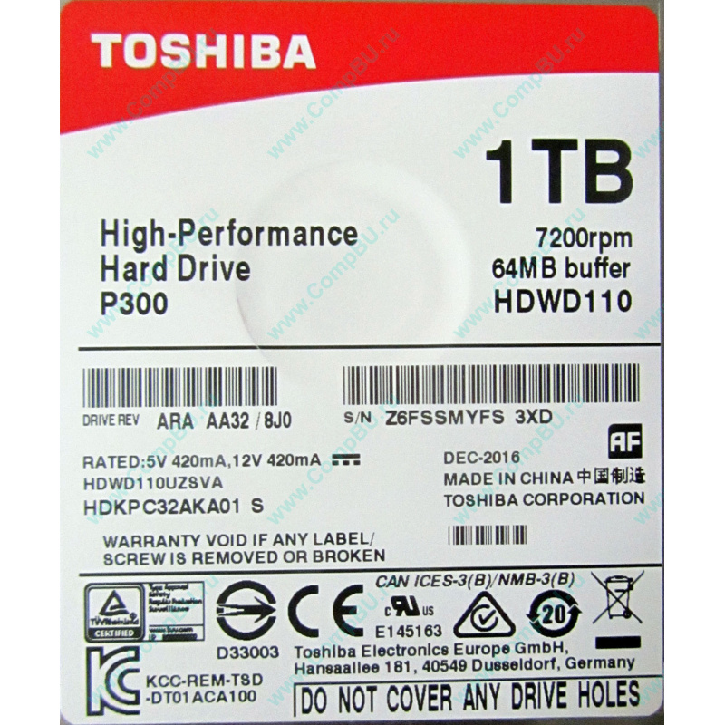 Дефектный жесткий диск 1Tb Toshiba HDWD110 P300 Rev ARA AA32/8J0 HDWD110UZSVA (Обнинск) Изображение большего размера