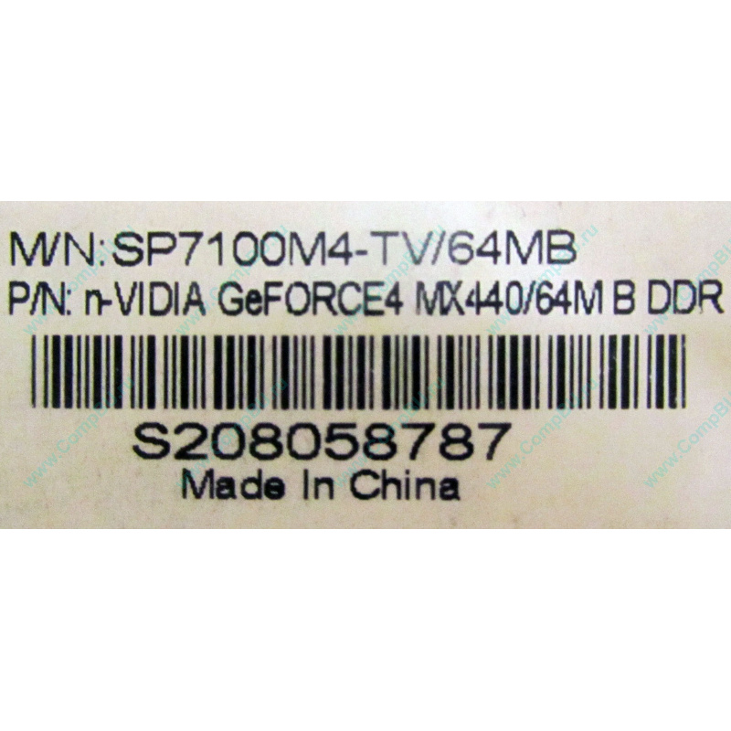 Видеокарта 64Mb nVidia GeForce4 MX440 AGP (Sparkle SP7100)