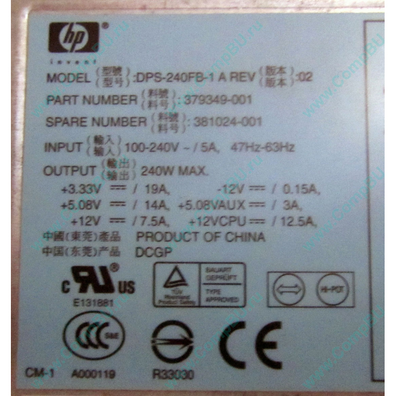 Блок питания 240W HP DPS-240FB-1 379349-001 381024-001 (Обнинск) Изображение большего размера